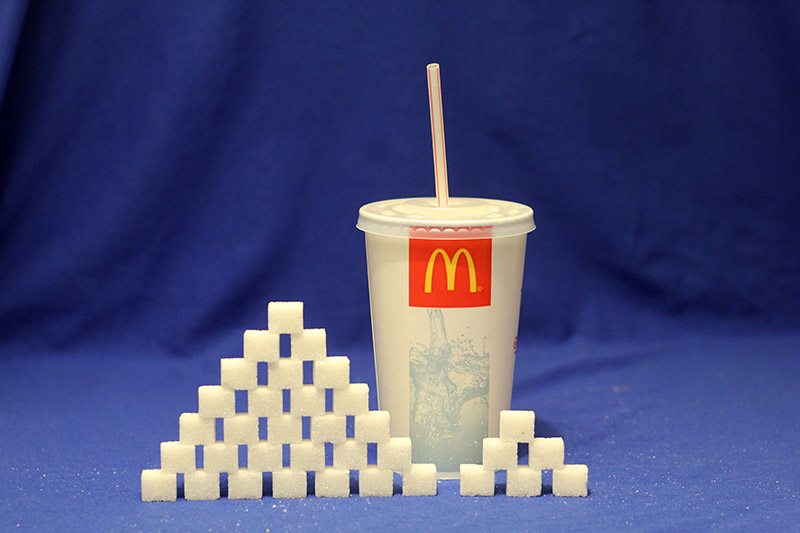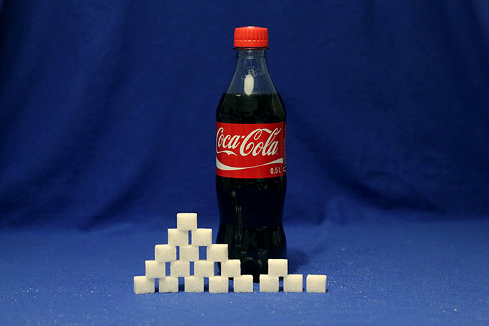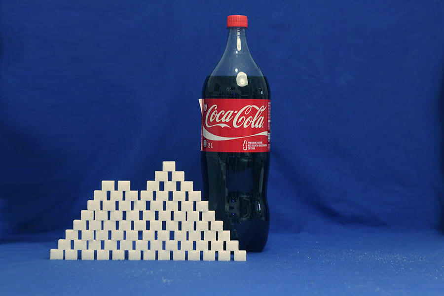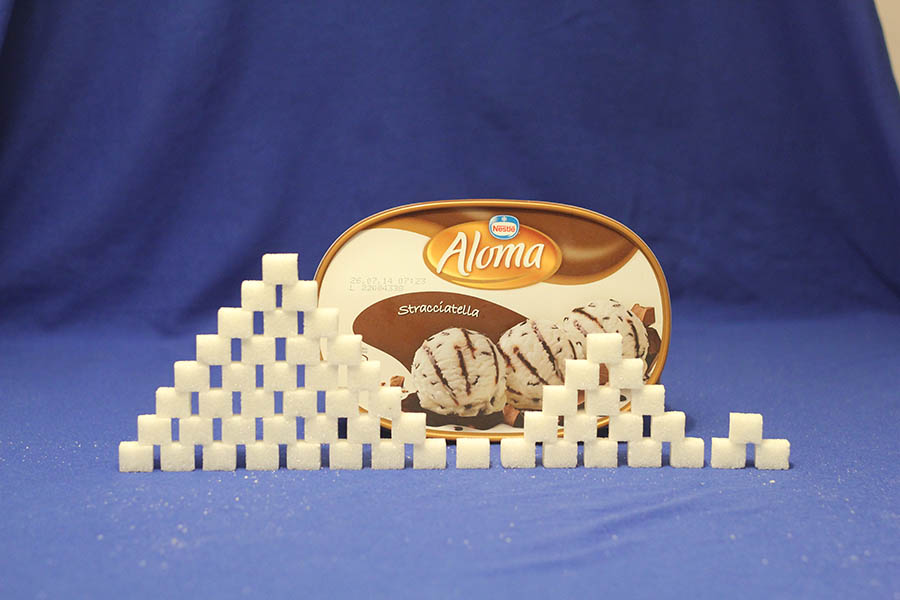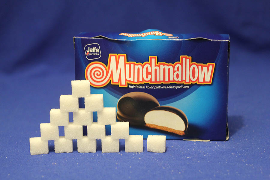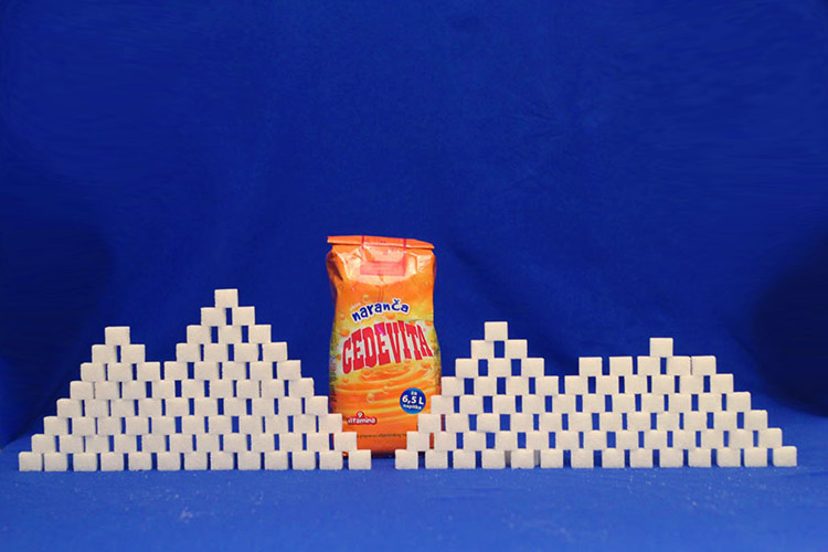 Poređao sam kocke šećera pored proizvoda, u količini koja se unutra nalazi. Pogledajte koliko zapravo ima šećera u hrani koju jedemo i pijemo.