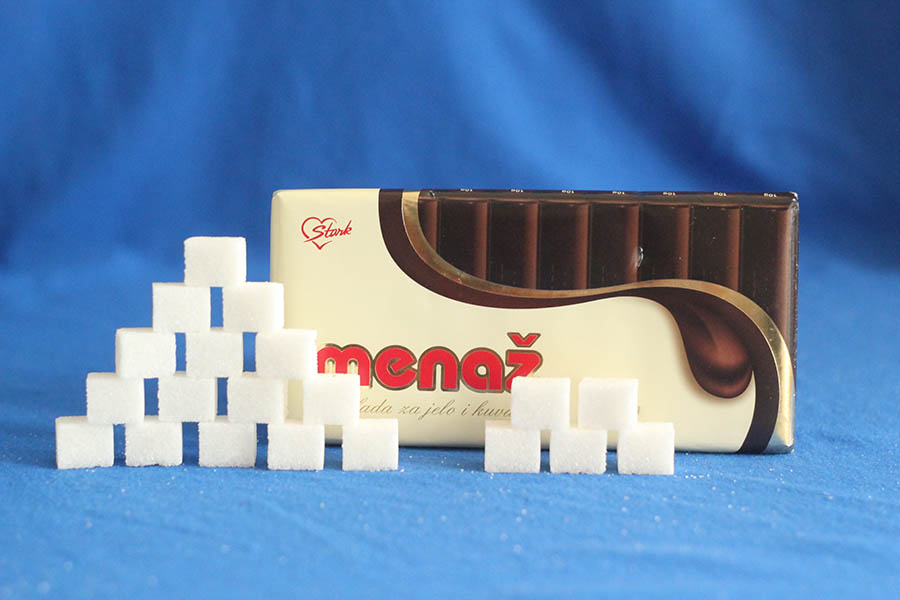 Crna čokolada. U mnogim tekstovima ćete naći informacije kako je crna čokolada zdravija i manje goji. U realnosti - ona sadrži istu količinu šećera kao i mlečna čokolada.