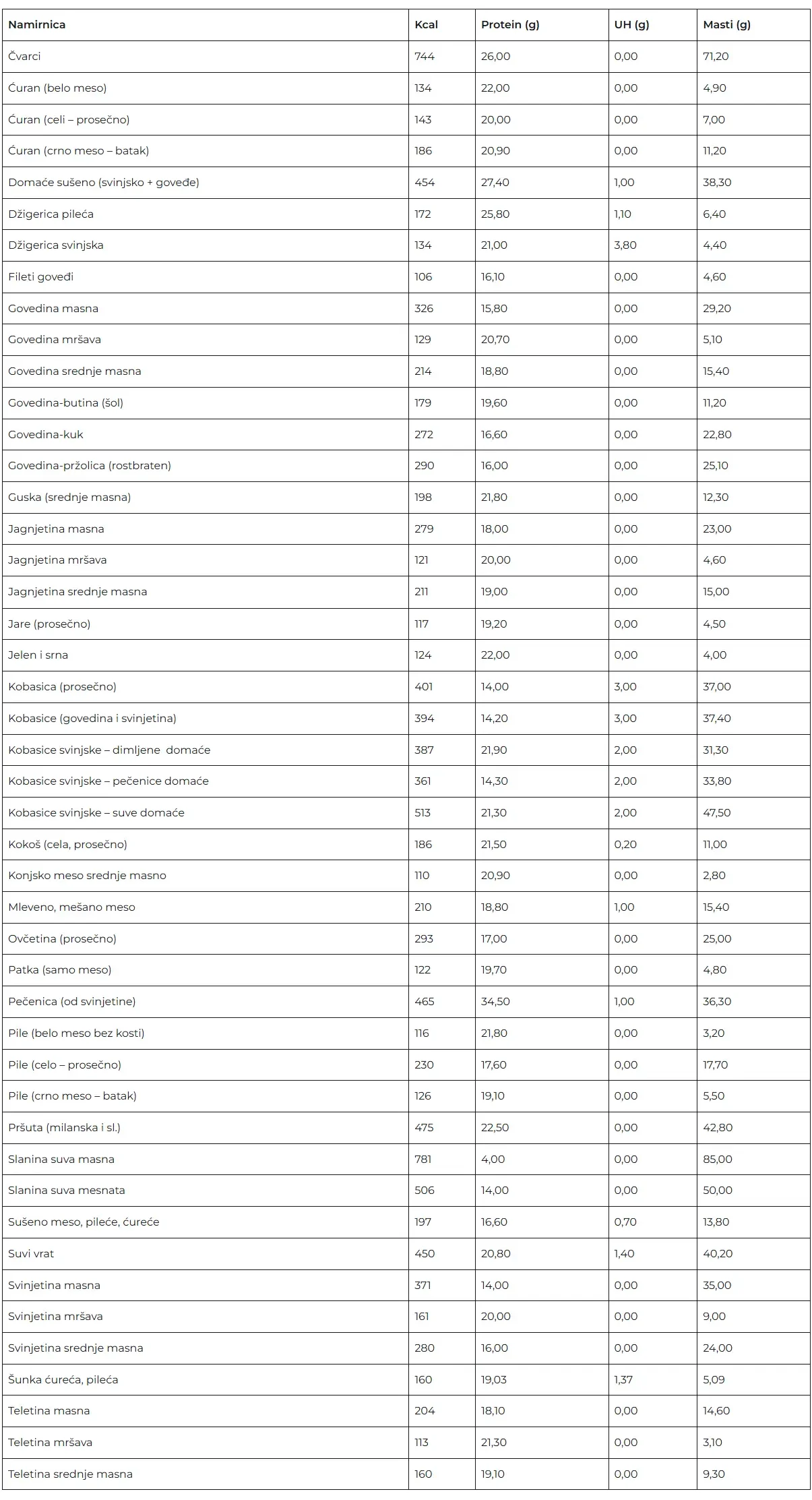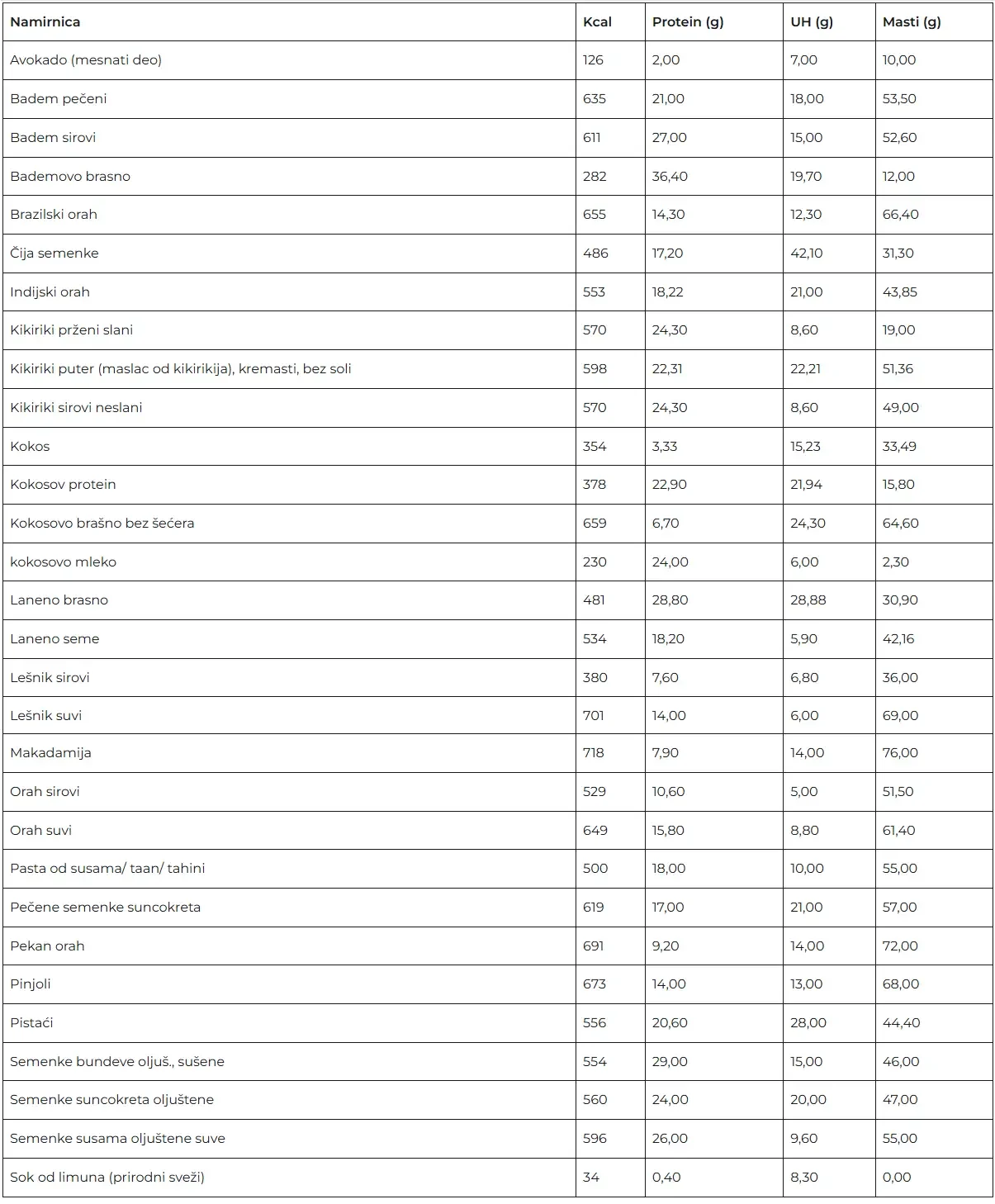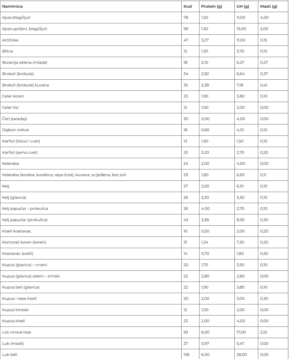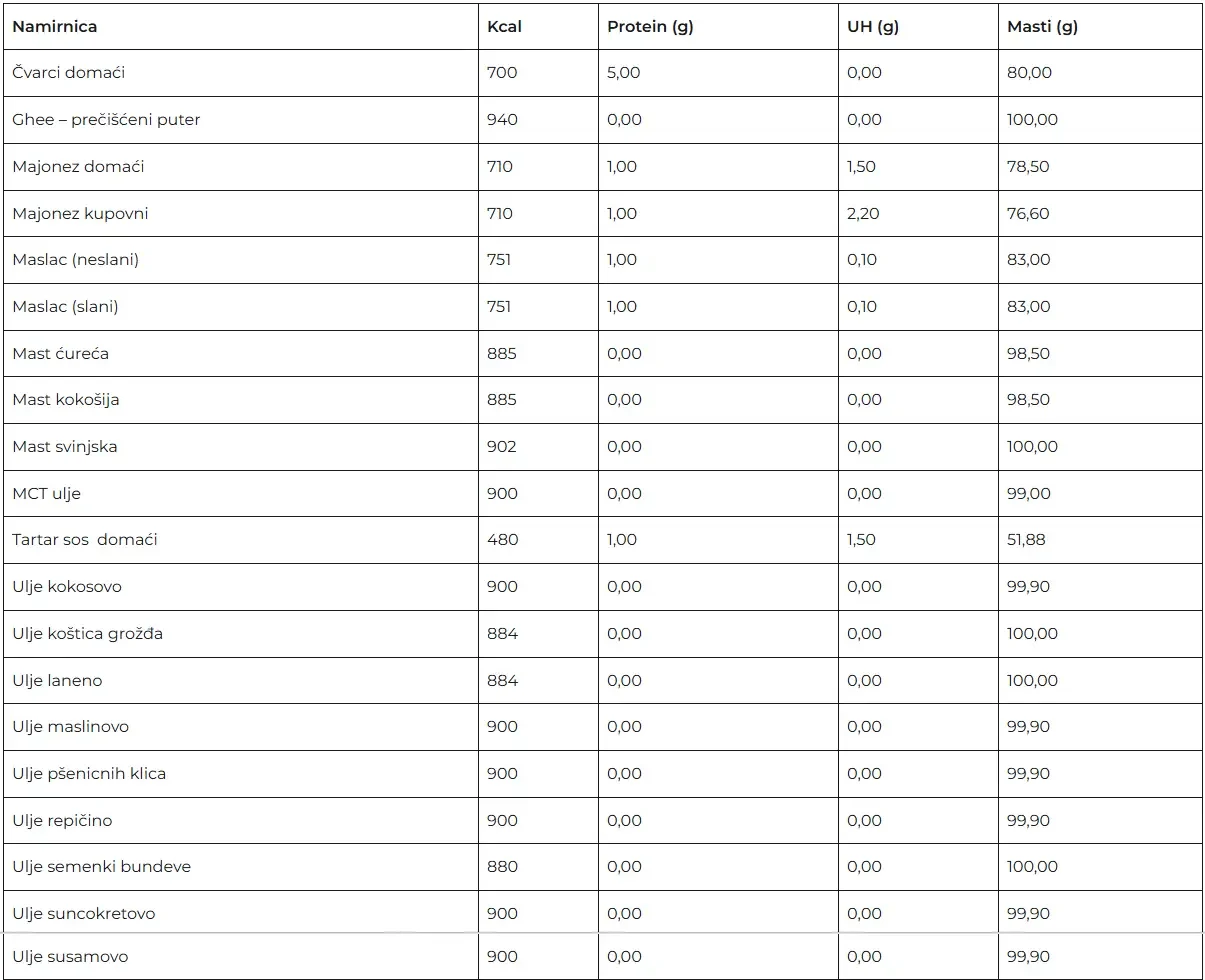 Tablica nutritivnih vrednosti za proizvode predstavlja jedan veoma koristan alat. Jako je važno naglasiti da su ovo ipak okvirne vrednosti, da sve zavisi od samog proizvoda. Da na primer paradaiz varira u zavisnosti od sorte, uzgoja itd. Tako je za svaku namirnicu.