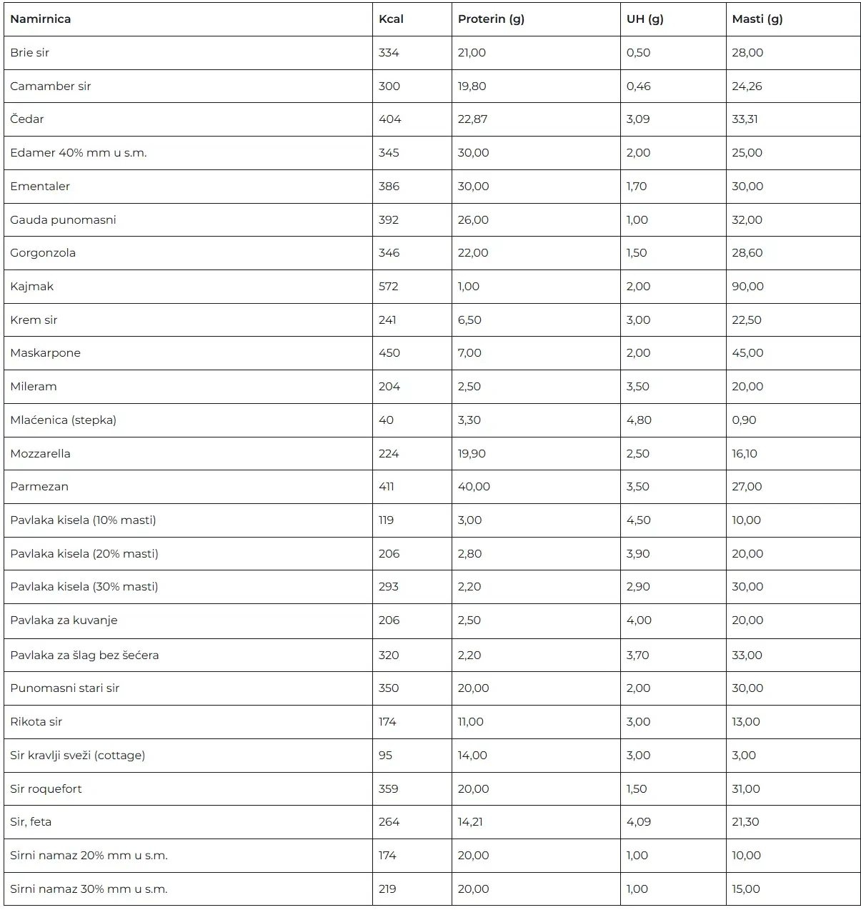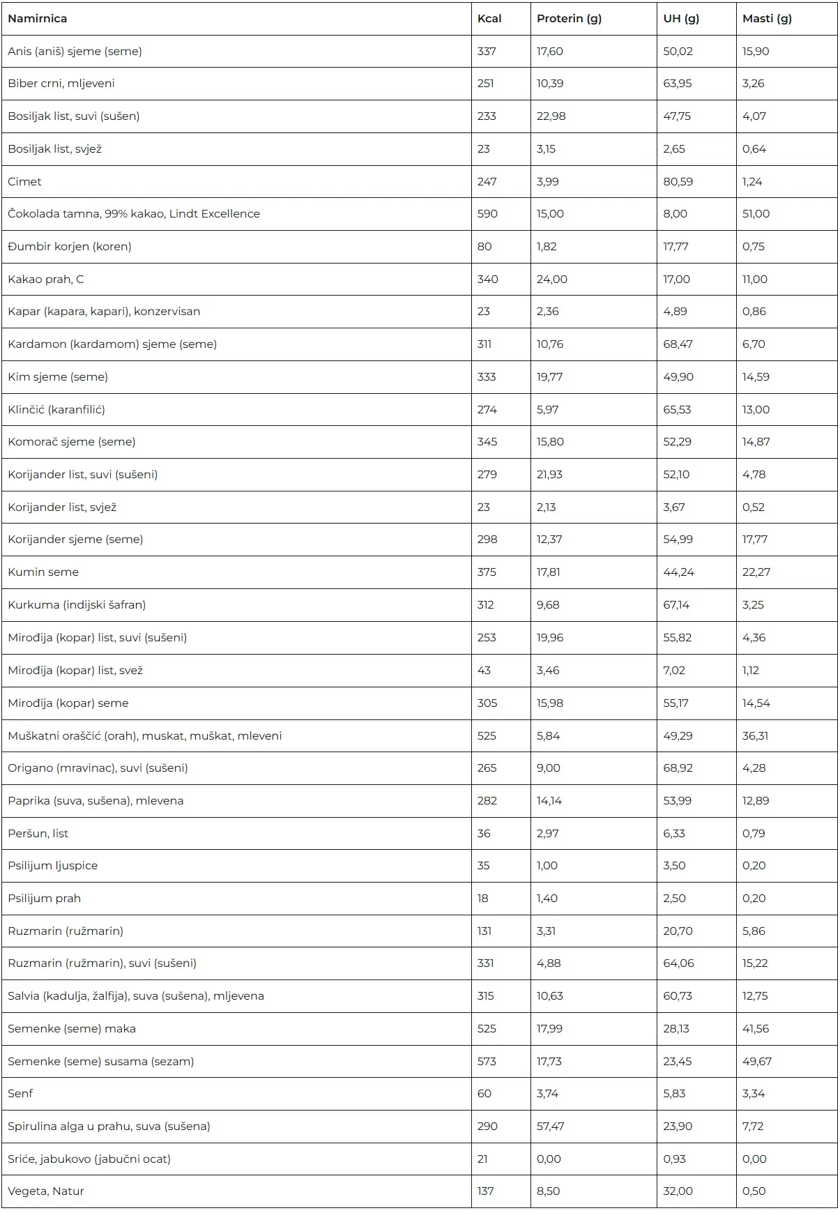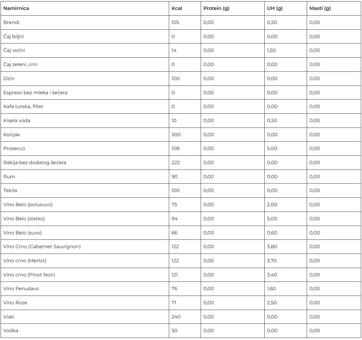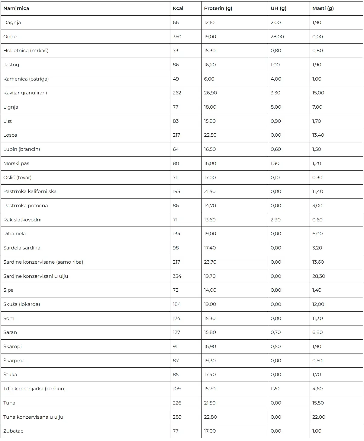 Tablica nutritivnih vrednosti za proizvode predstavlja jedan veoma koristan alat. Jako je važno naglasiti da su ovo ipak okvirne vrednosti, da sve zavisi od samog proizvoda. Da na primer paradaiz varira u zavisnosti od sorte, uzgoja itd. Tako je za svaku namirnicu.